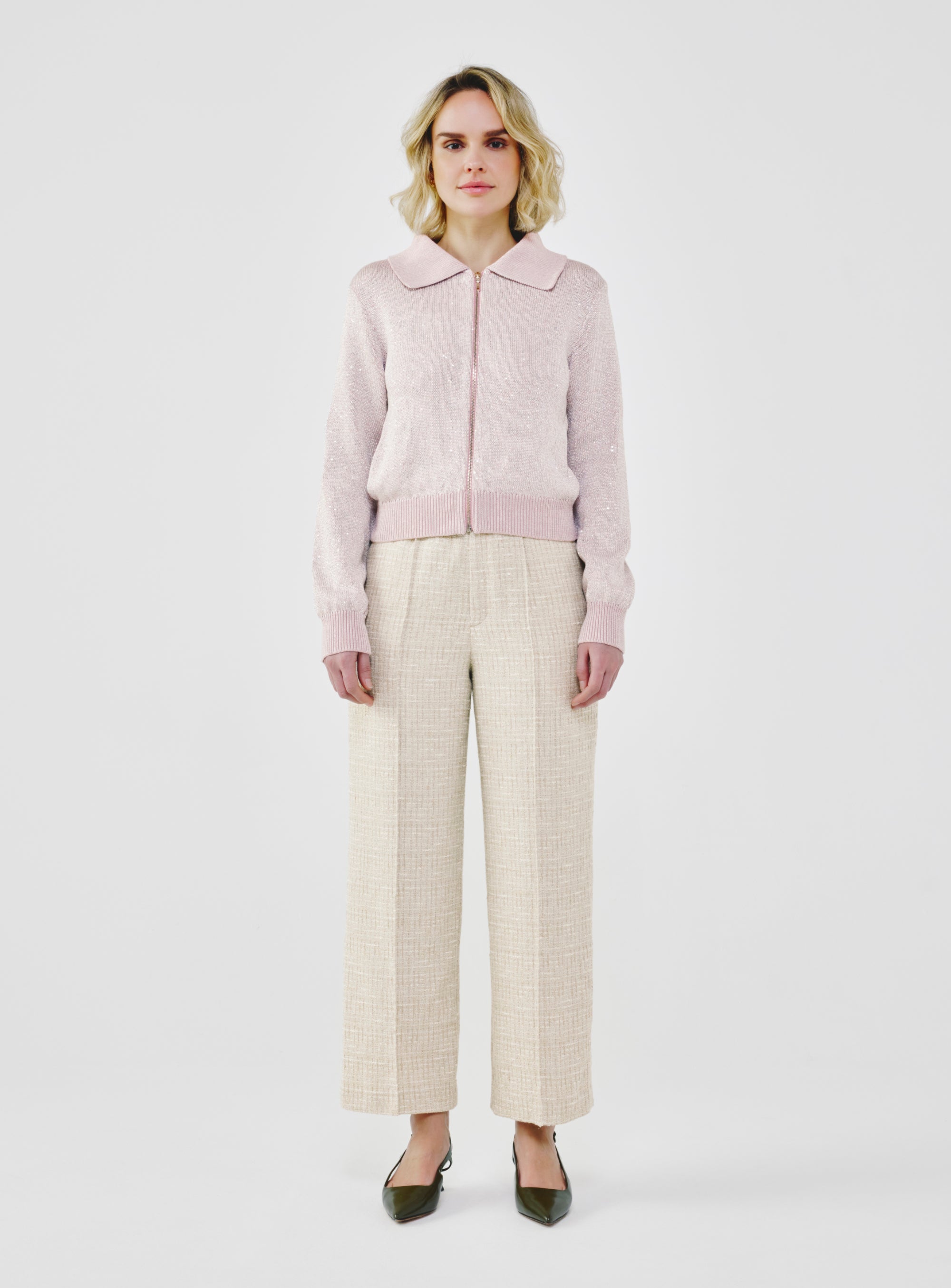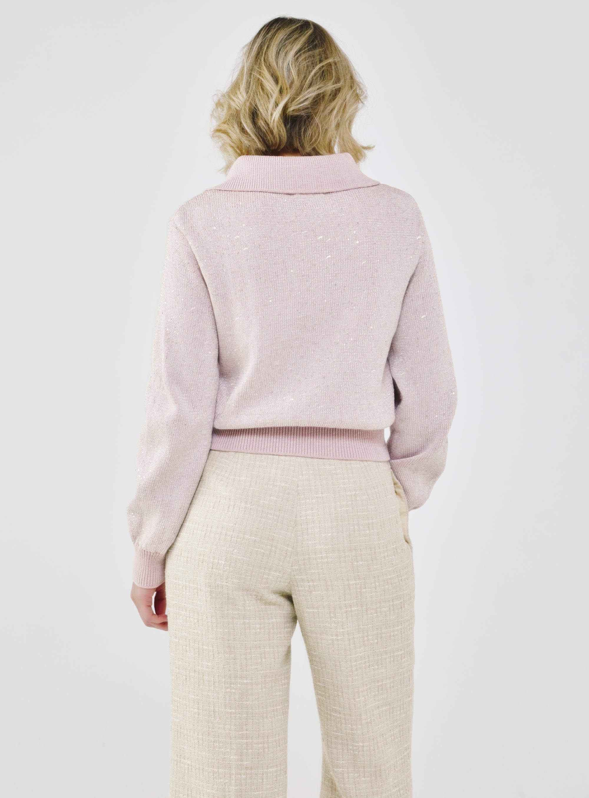 Sequin-Kissed Cotton Cardigan - Dusty Pink