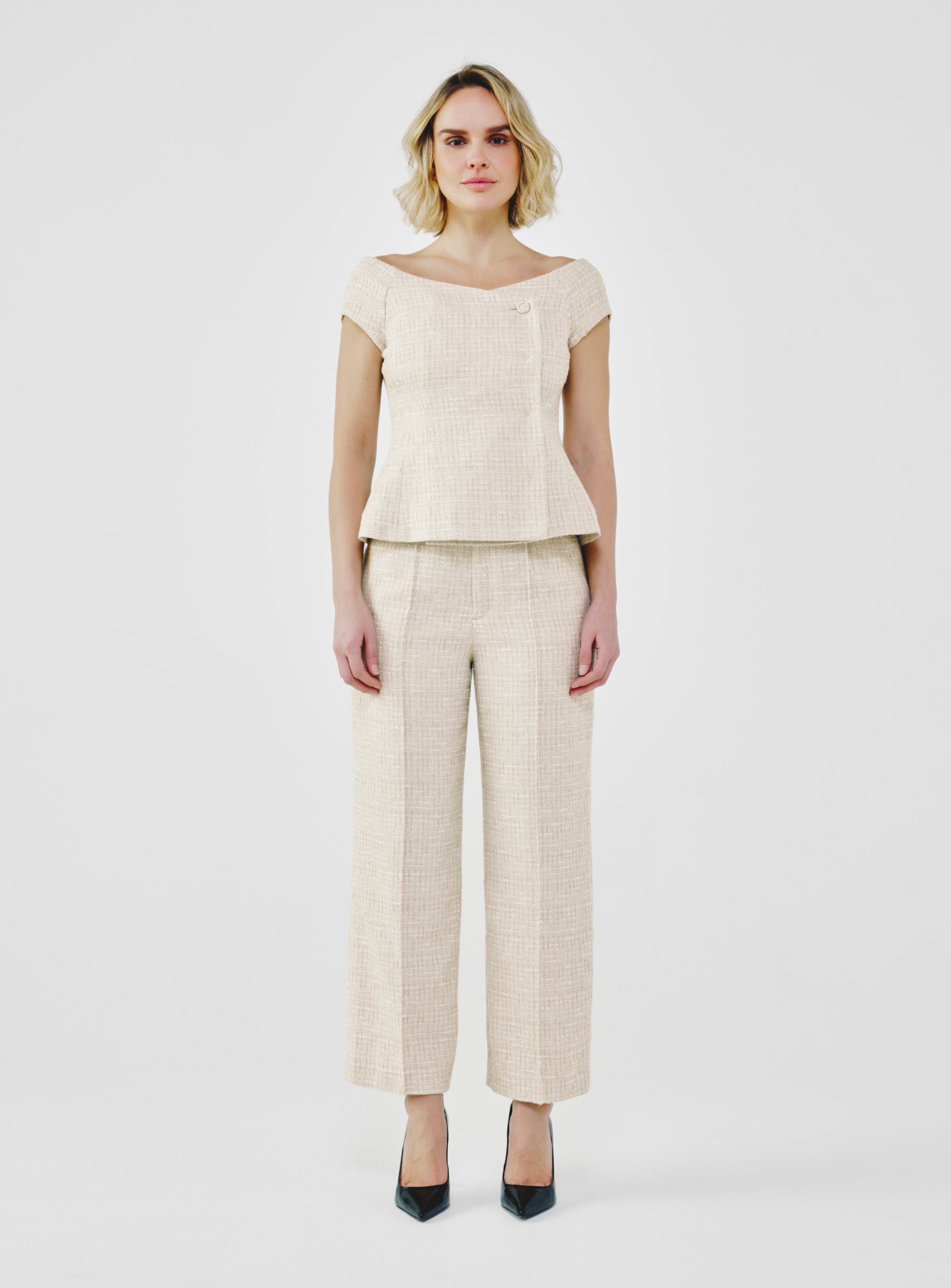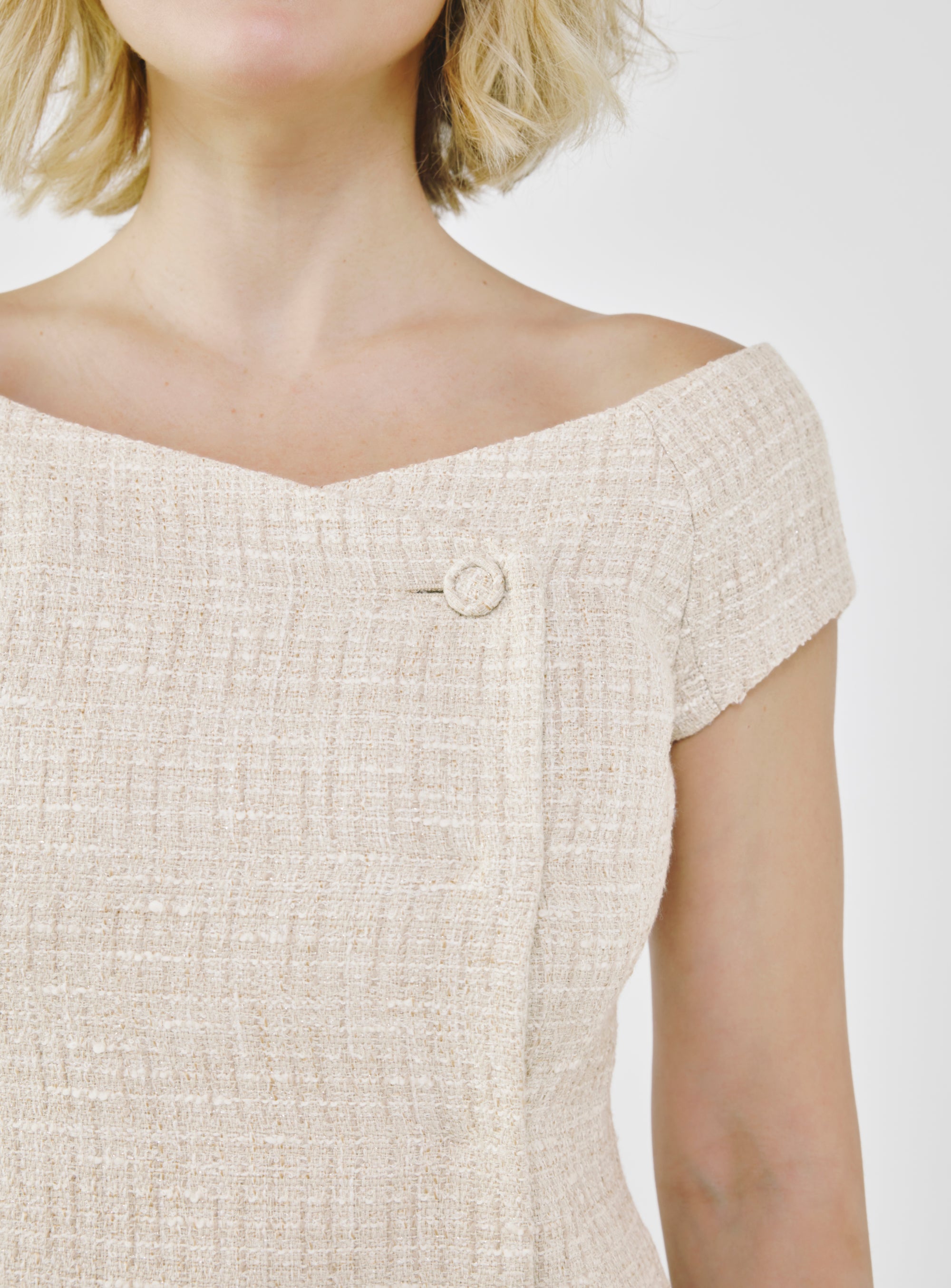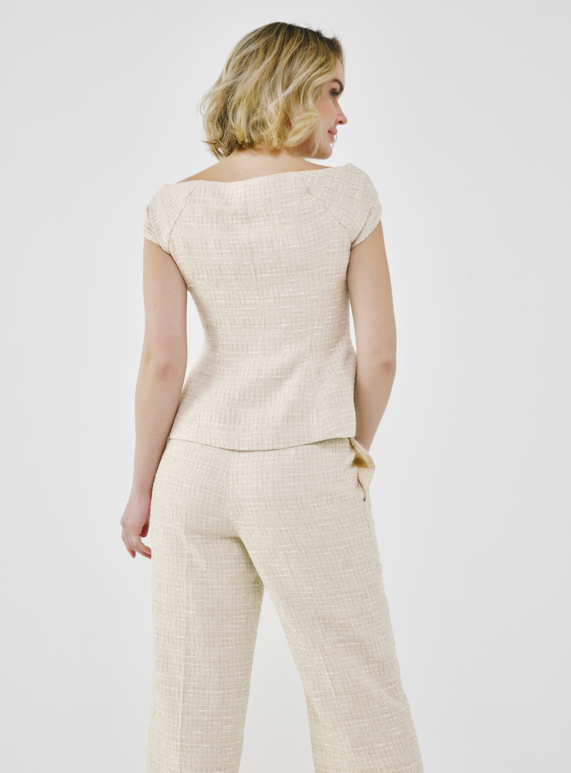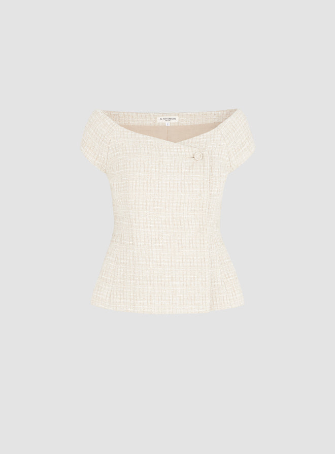 Tailored Fancy Tweed Bardot Top - Crème