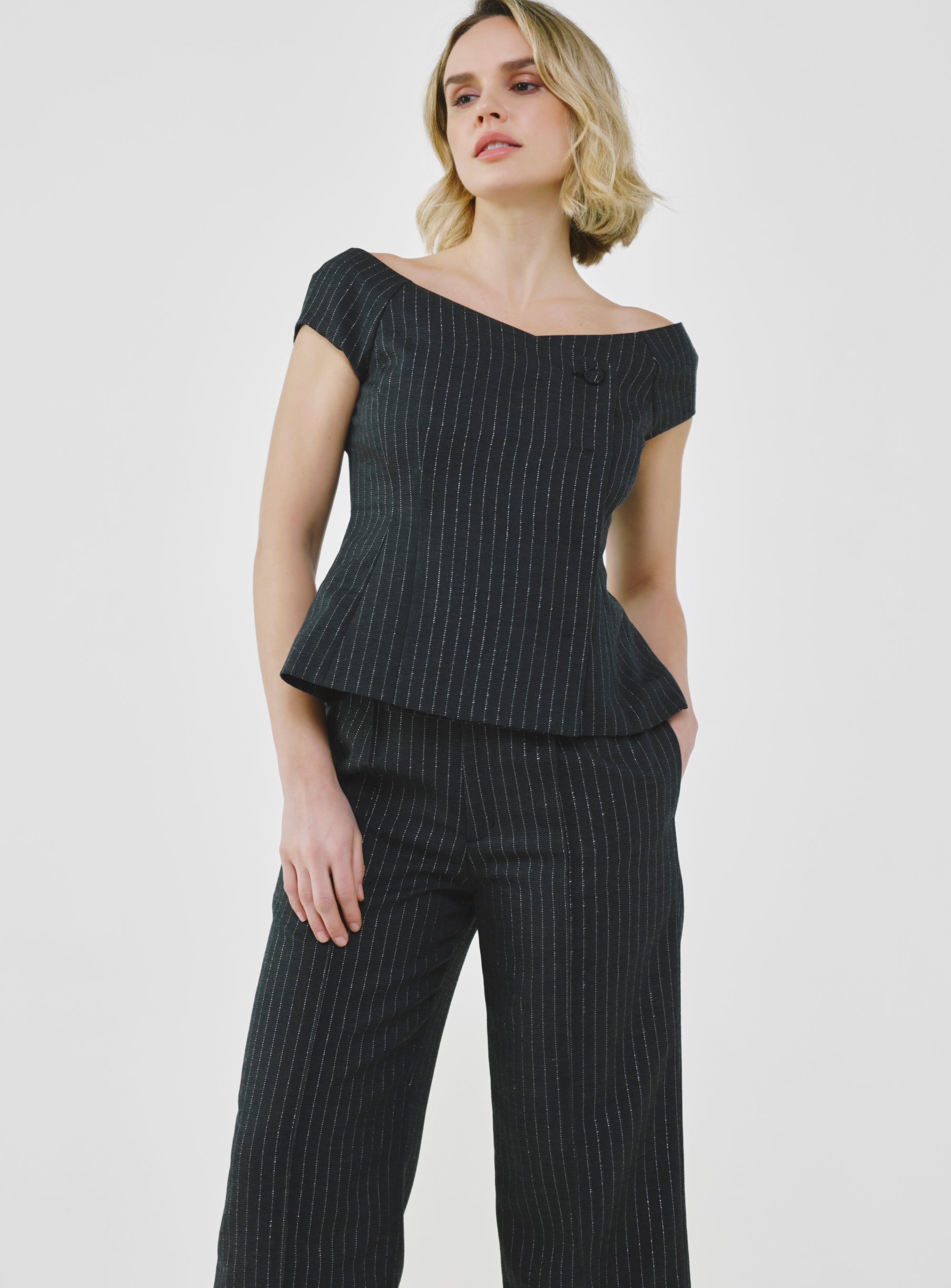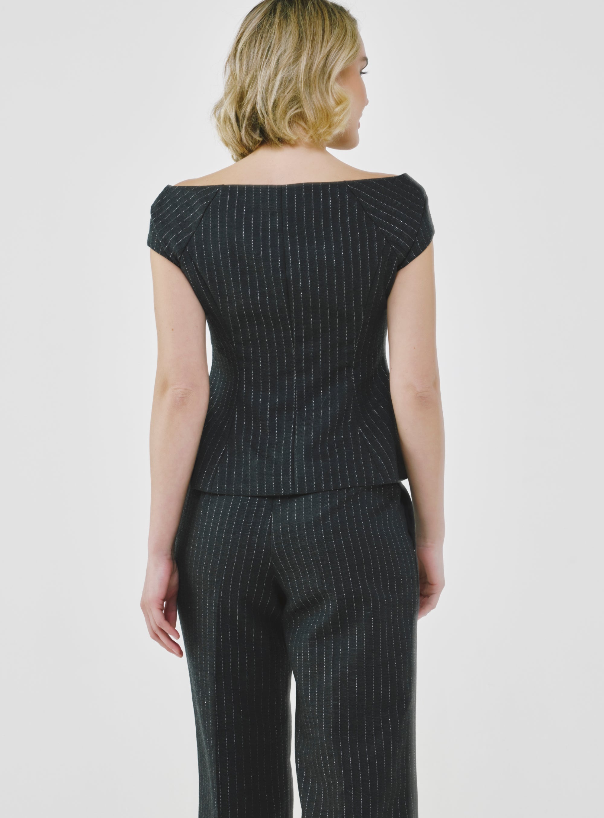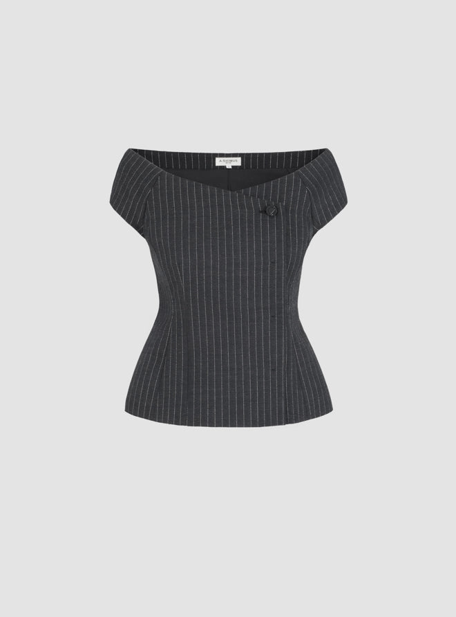Tailored Pinstripe Bardot Top - Charcoal Grey