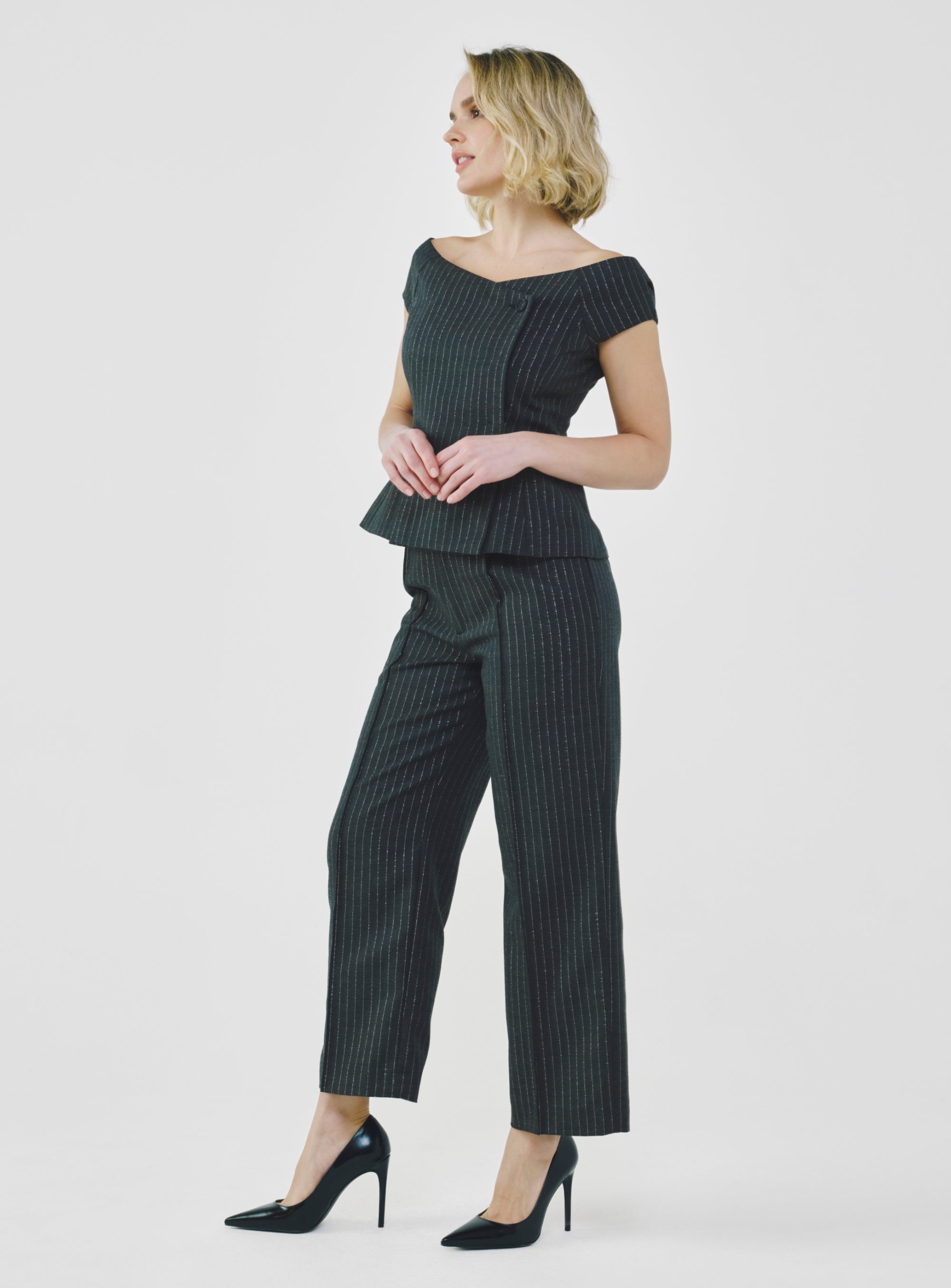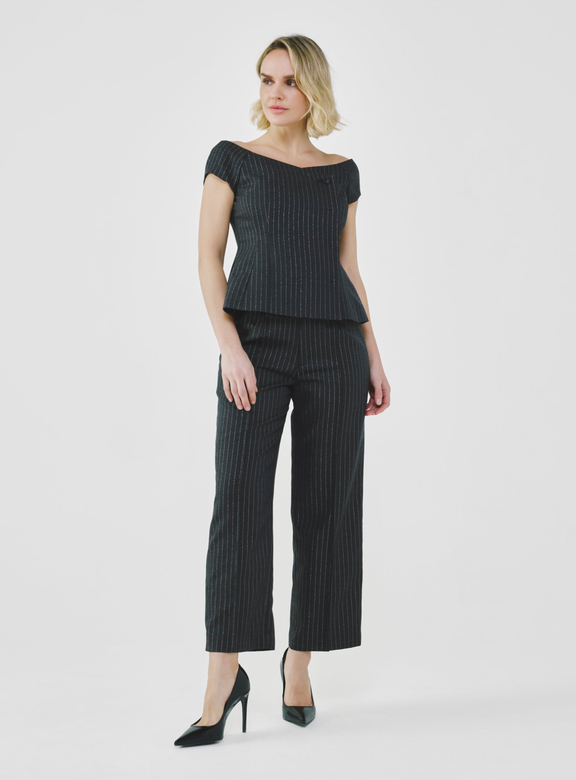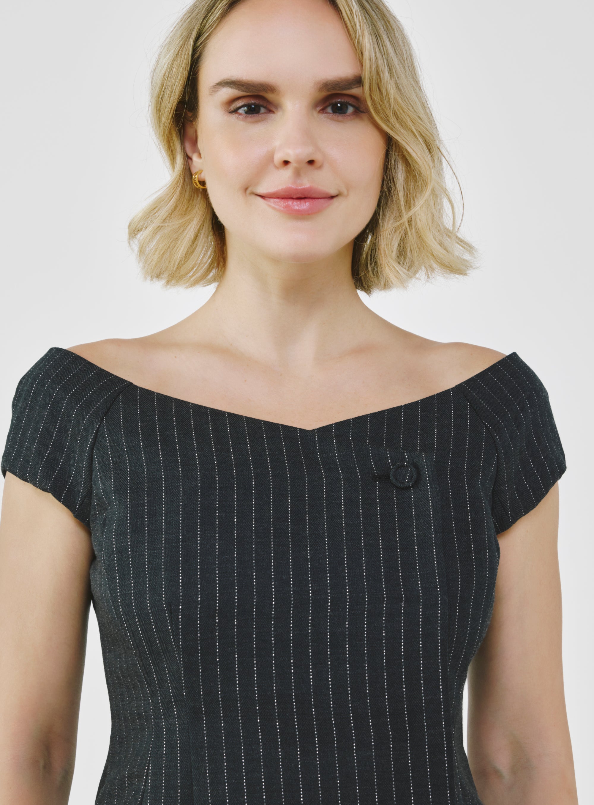 Tailored Pinstripe Bardot Top - Charcoal Grey