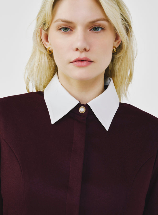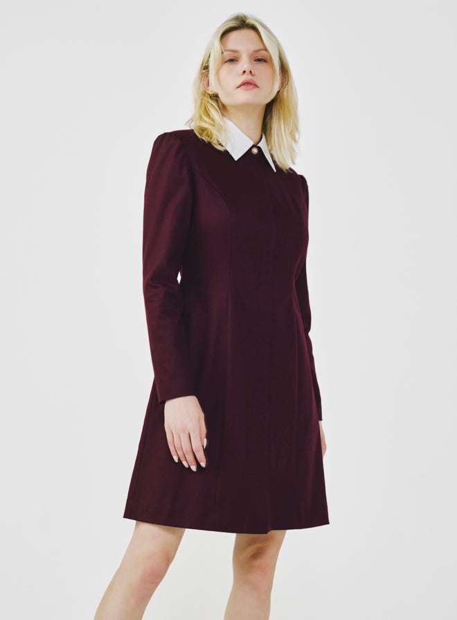 Long Sleeve Wool Shirt Dress - Bordeaux