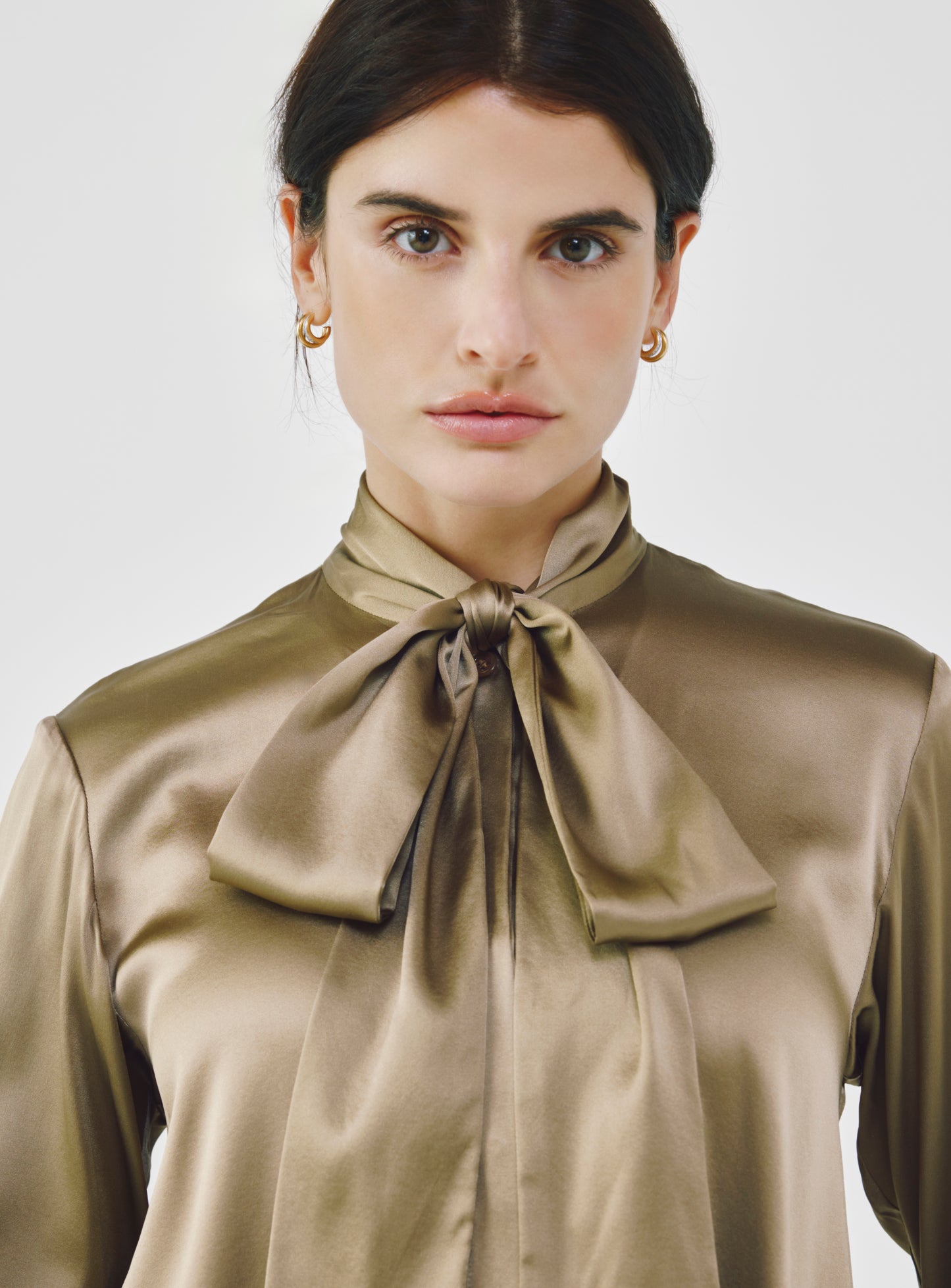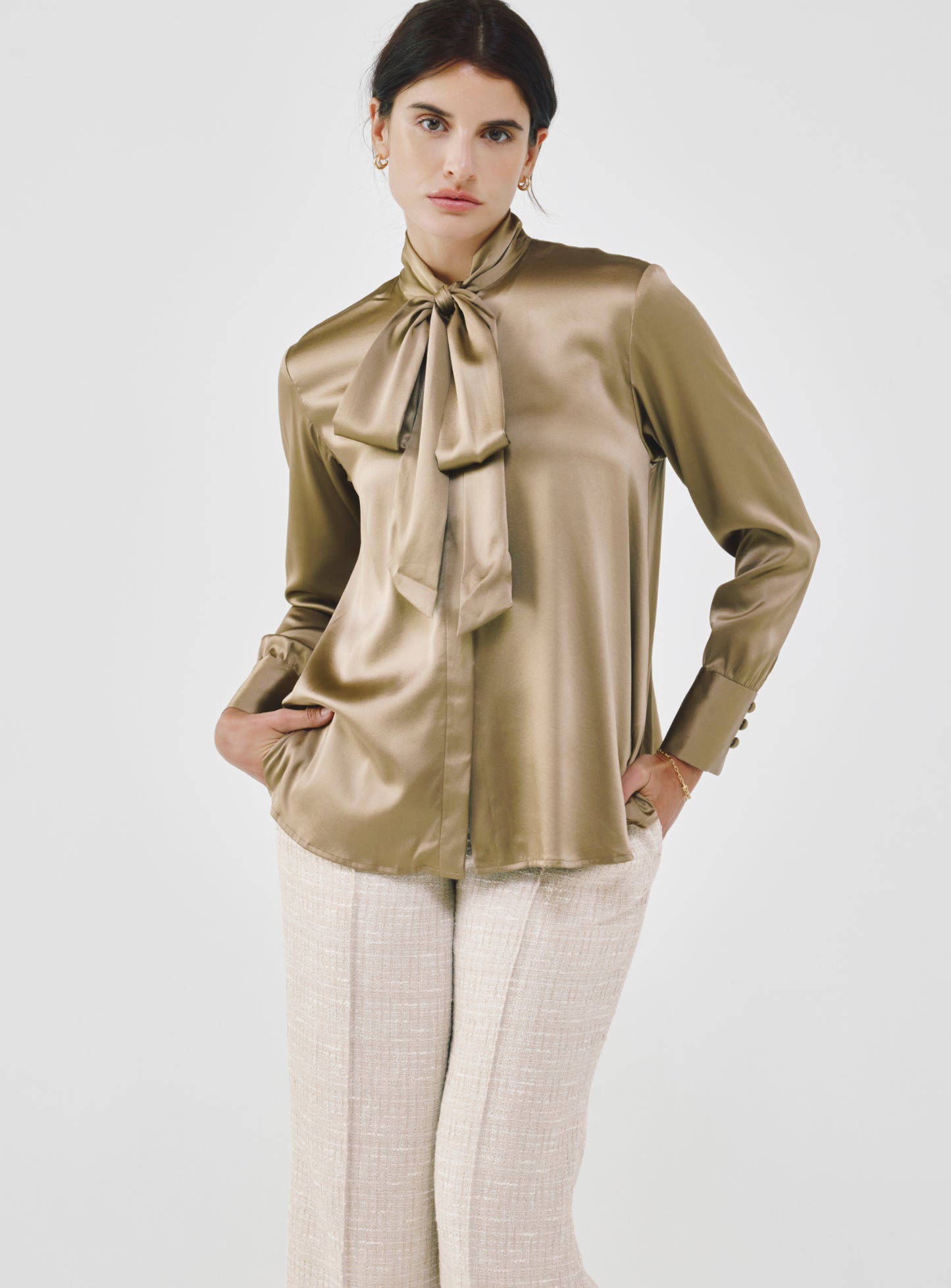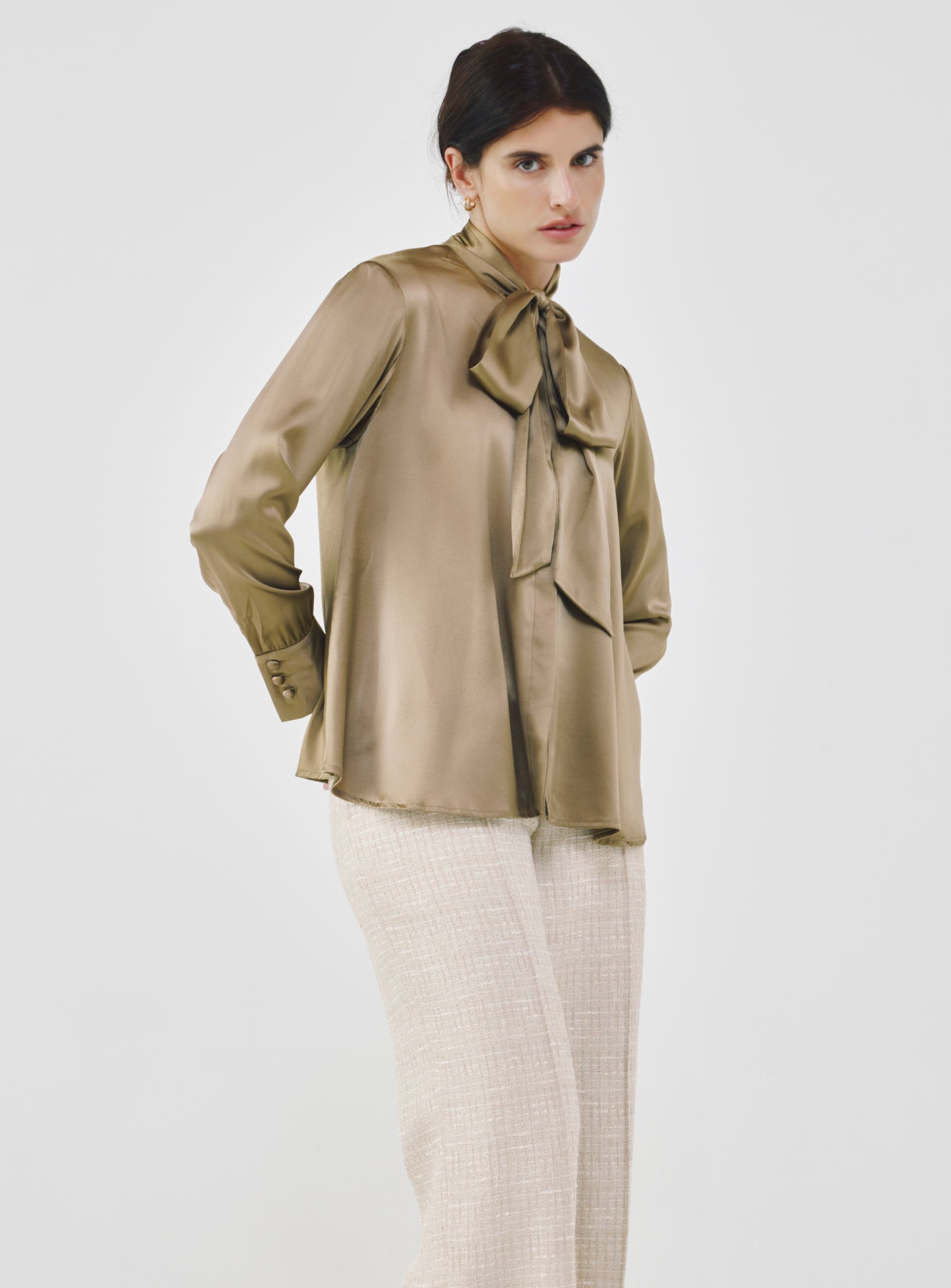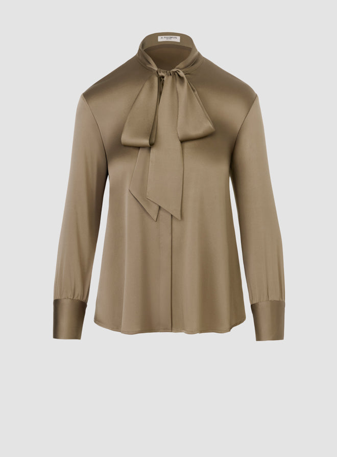 Silk Bow Blouse - Khaki