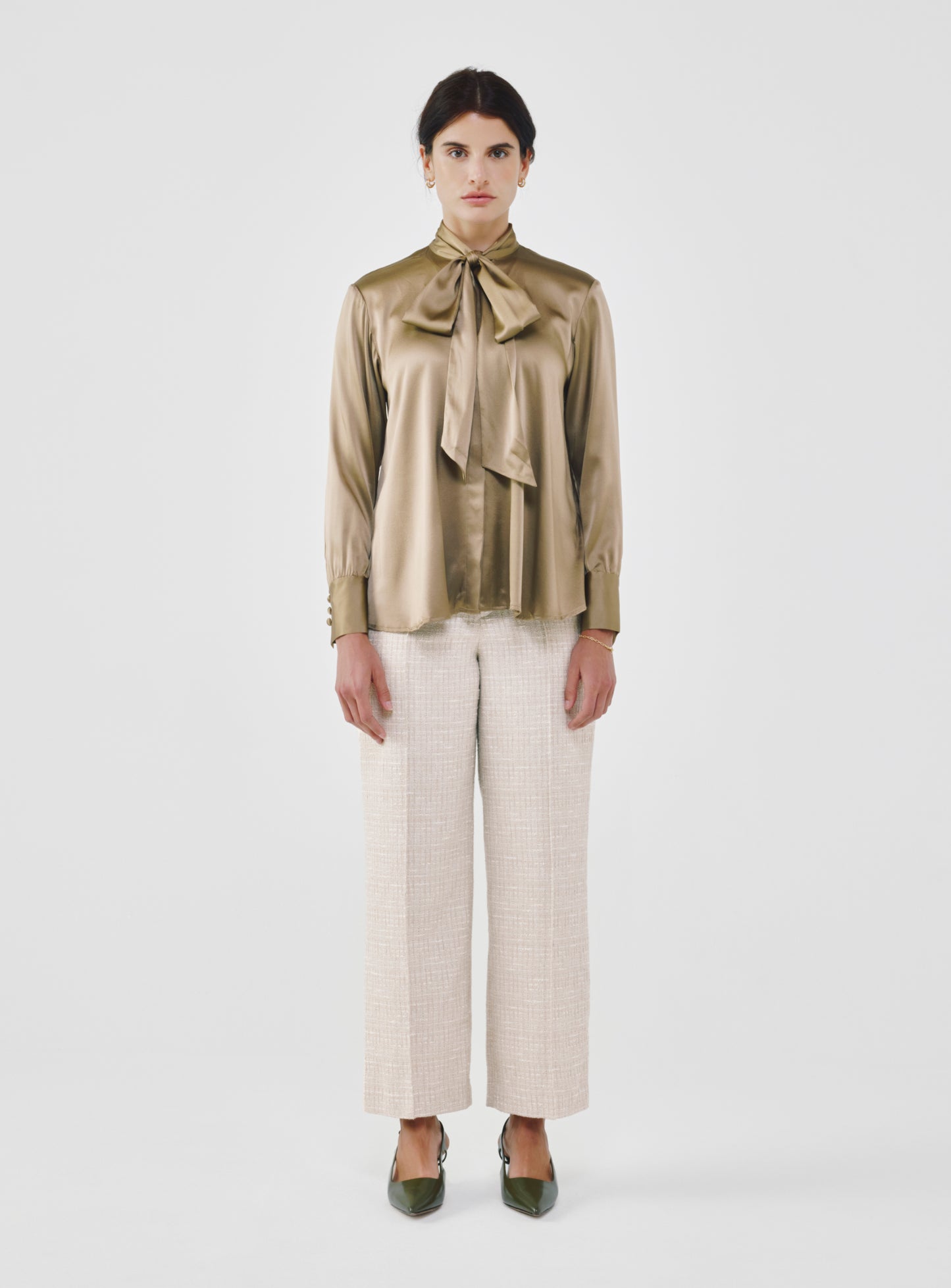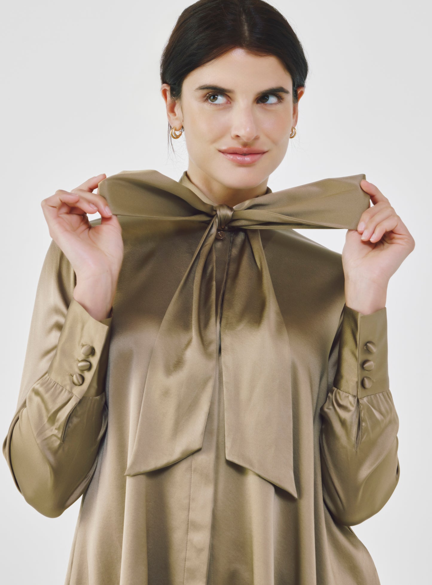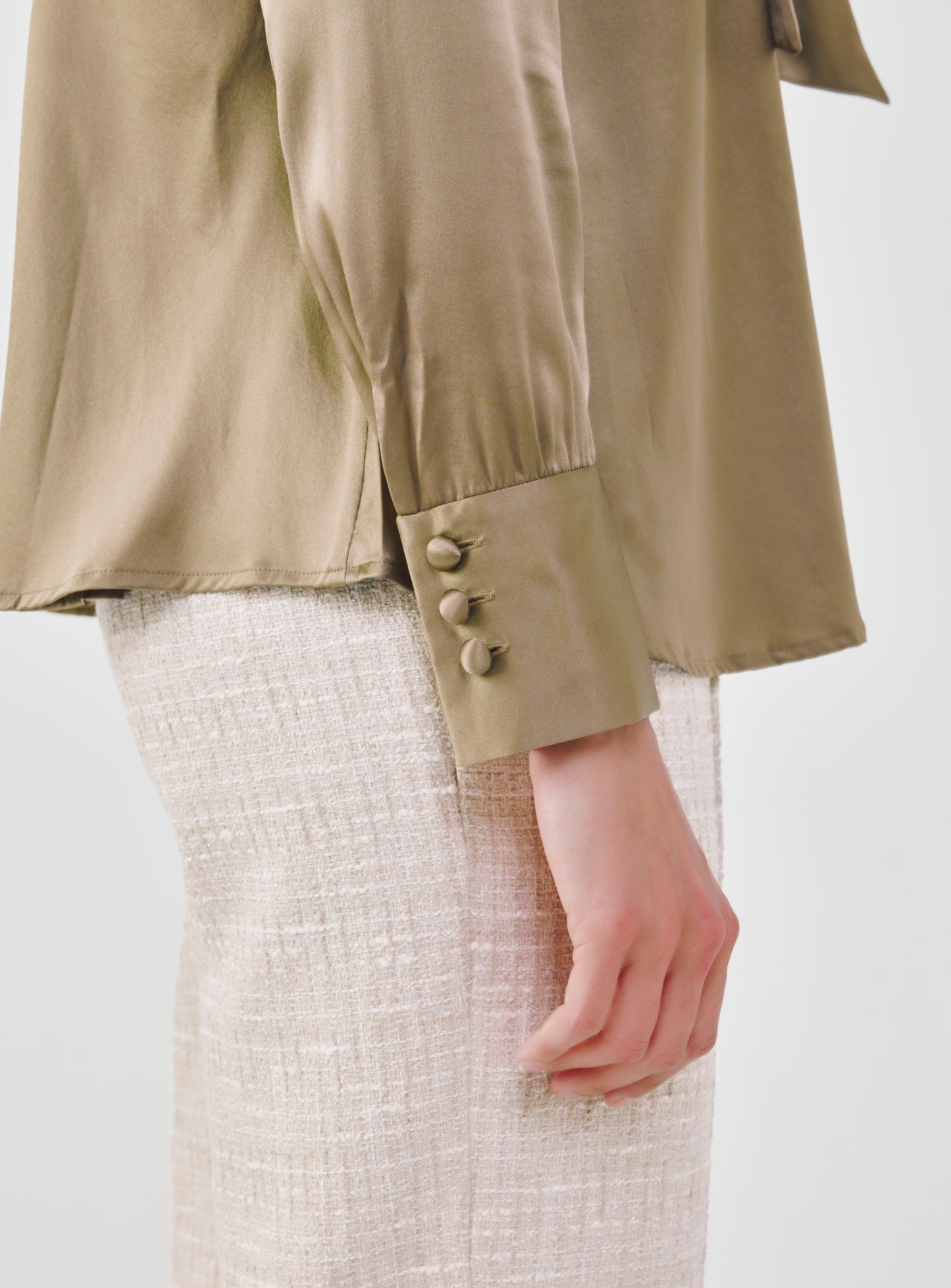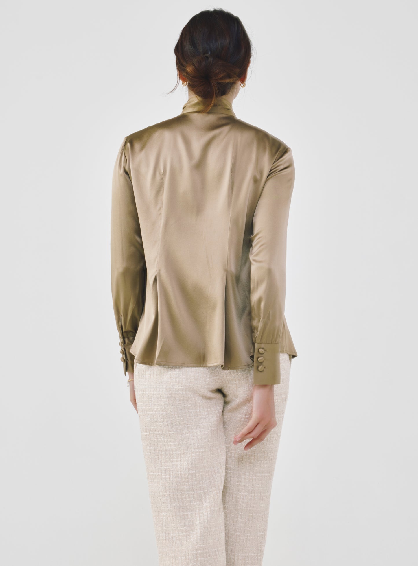 Silk Bow Blouse - Khaki
