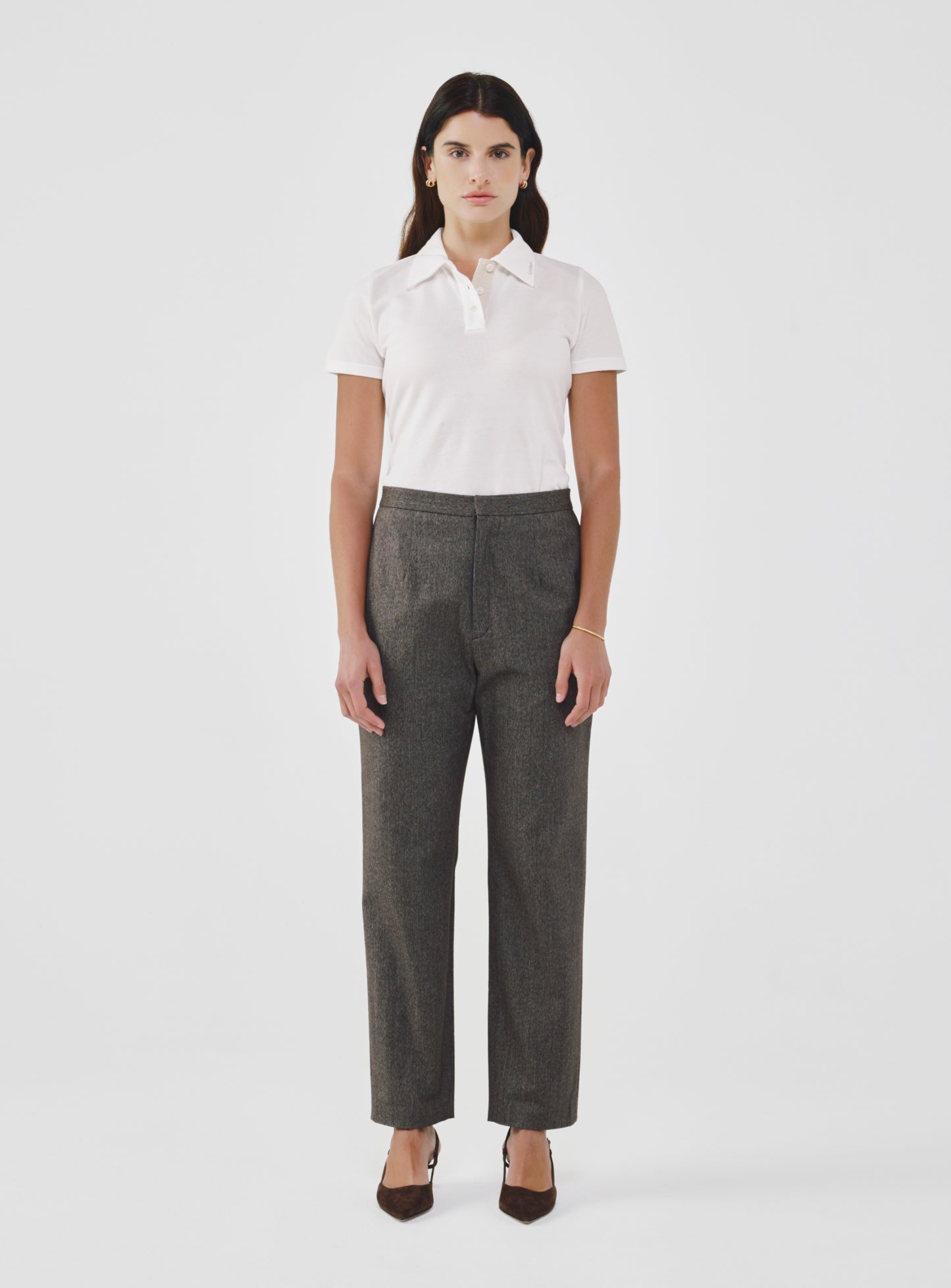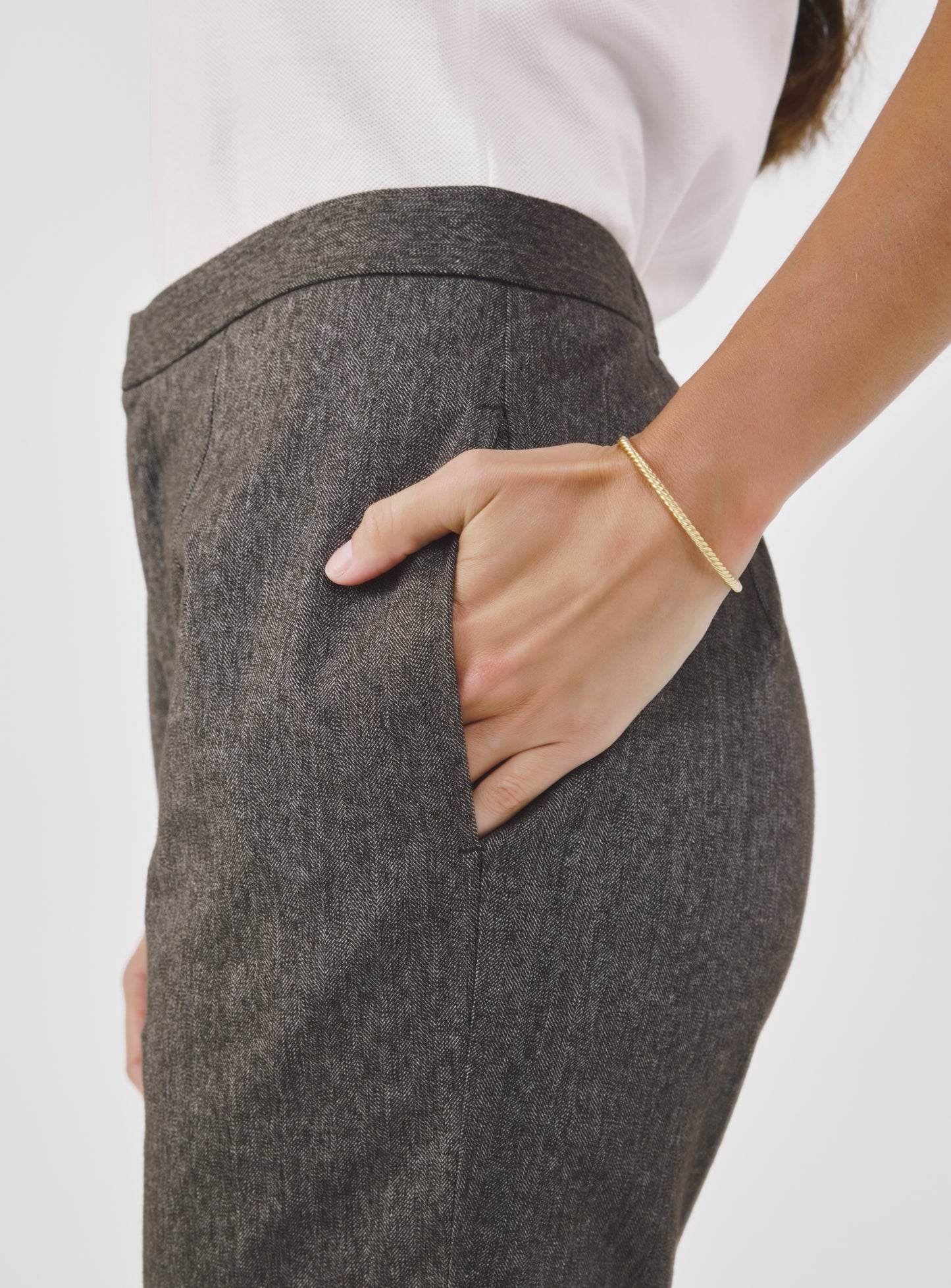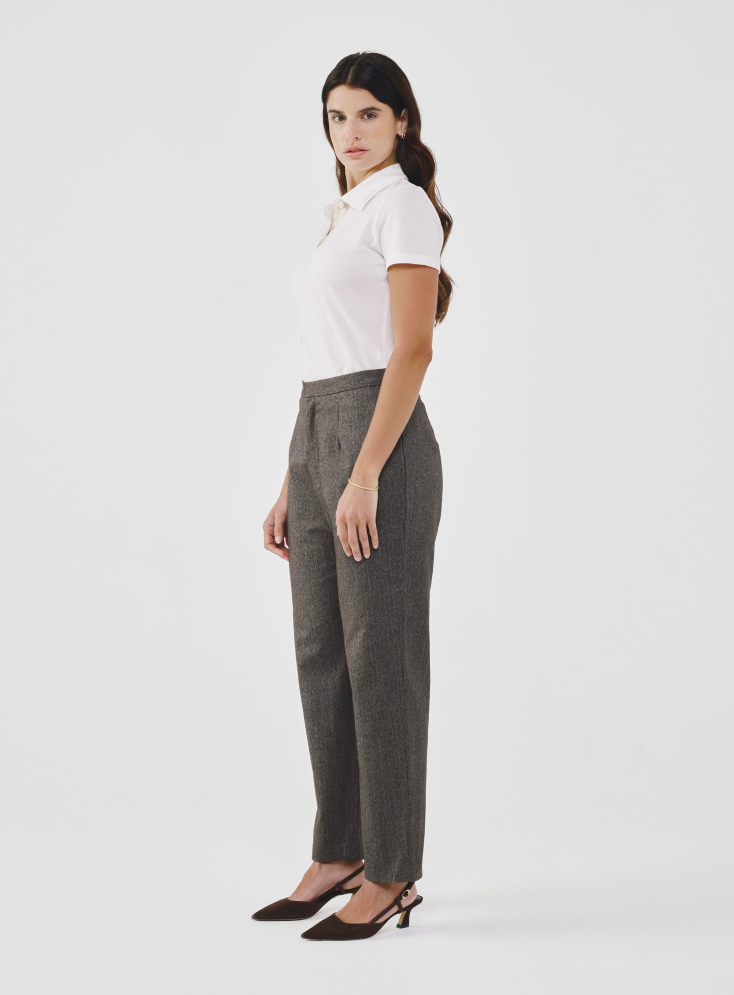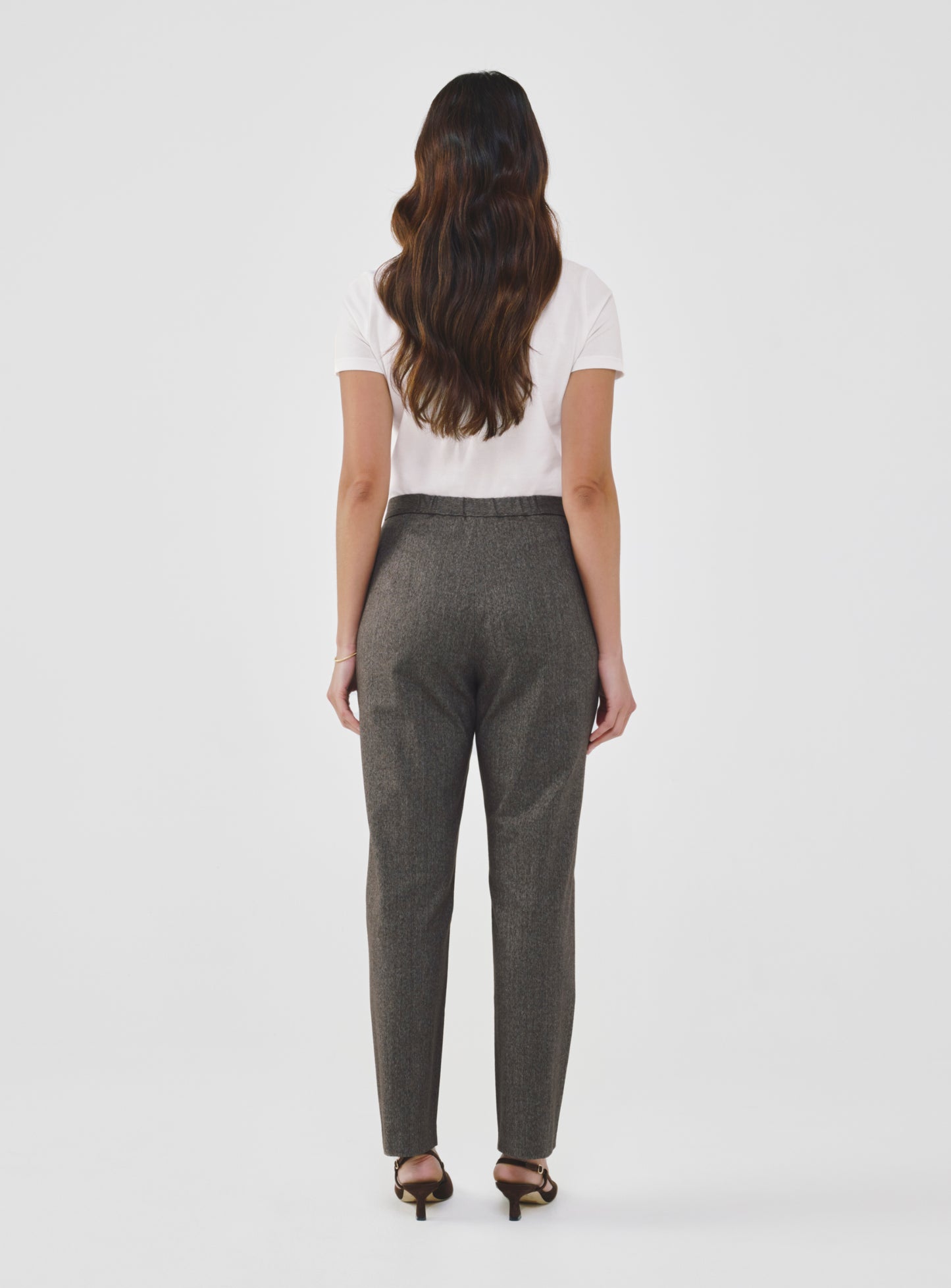 These high-waist, cropped pants are tailored to flatter, comfortably contouring the hips with soft and stretchy fabric. The elasticized back waistband offers a flexible fit, while the streamlined silhouette allows for ease of movement throughout the day. A versatile staple that transitions effortlessly from work to weekend.
