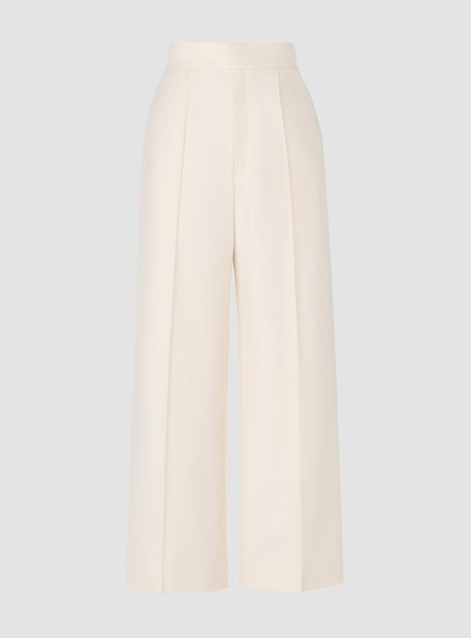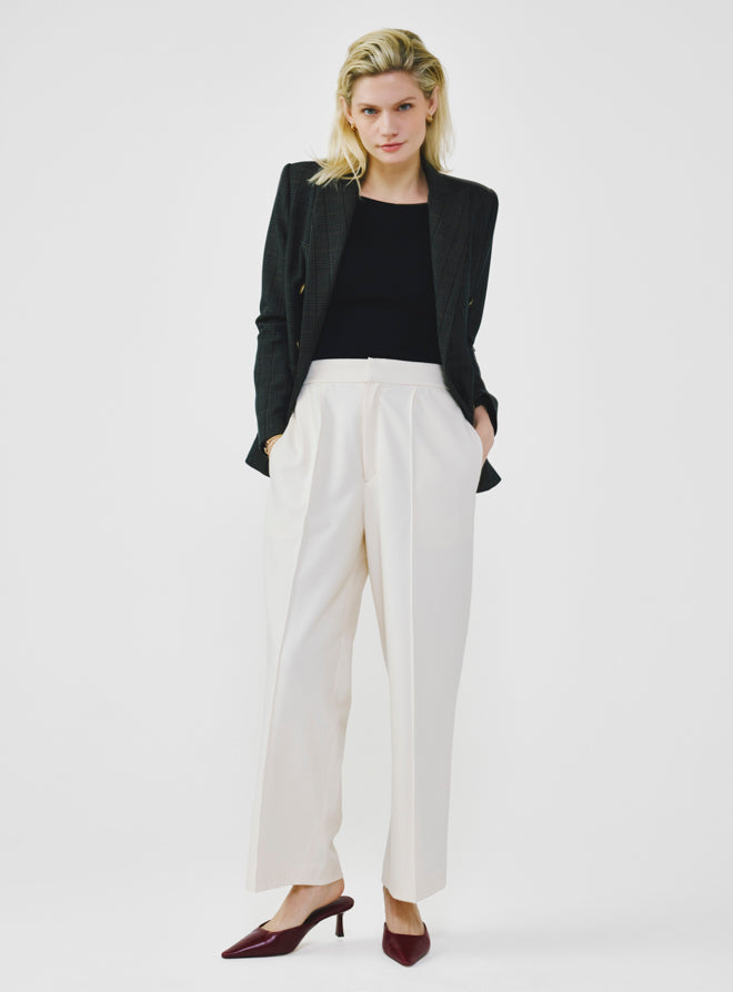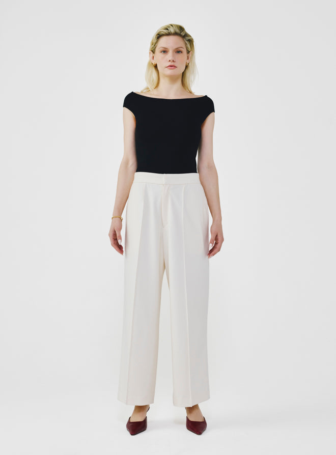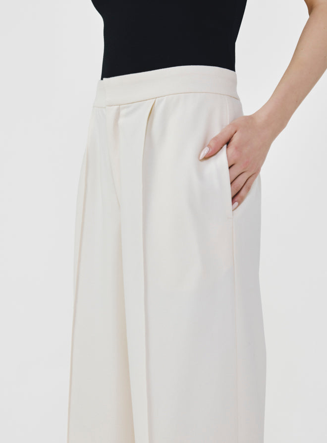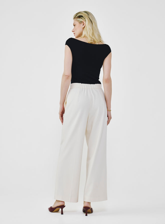 Wide Leg Pants with Elastic Waistband - Ivory